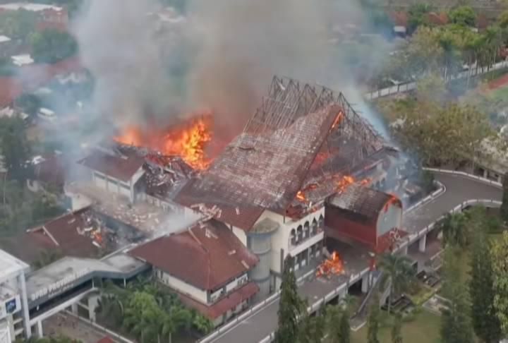 Kobaran api membubung tinggi hingga atap gedung DPRD Provinsi NTB ludes terbakar.